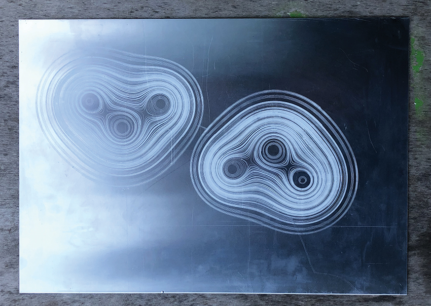 Champ de lignes est une série d’expérimentations autour du dessin paramétrique génératif. L’utilisation d’un logiciel de modélisation 3D paramétrique permet une simulation de lignes contraintes par des points d’attraction. Ces illustrations sont intégrées dans Actinique et complète l’oeuvre de la notion d’inertie à plusieurs centres.